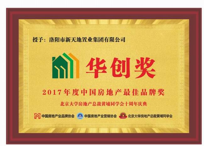 《华创奖•2017年度中国房地产***佳品牌奖》