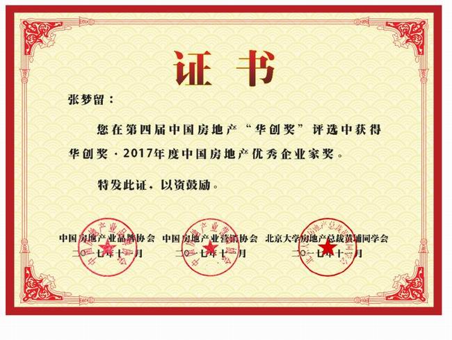 《华创奖•2017年度中国房地产***企业家奖》